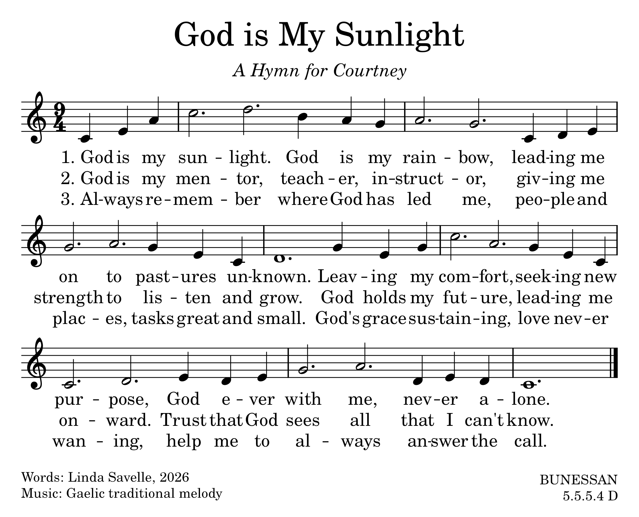 I hope you enjoy singing, God is My Sunlight, also known as, A Hymn for Courtney, this Sunday.